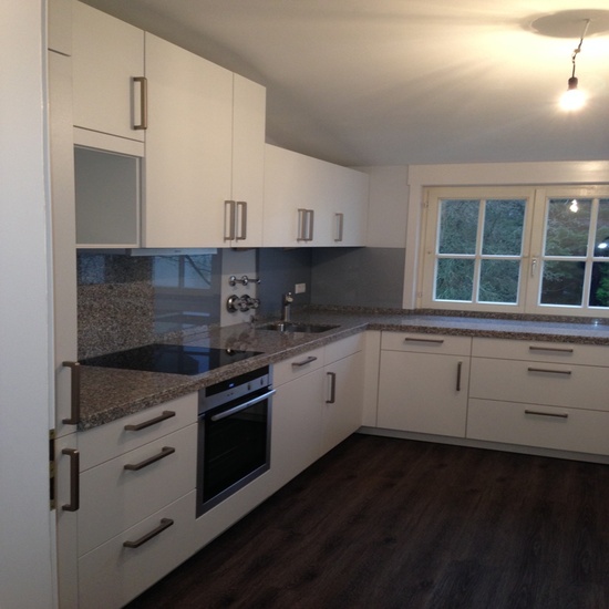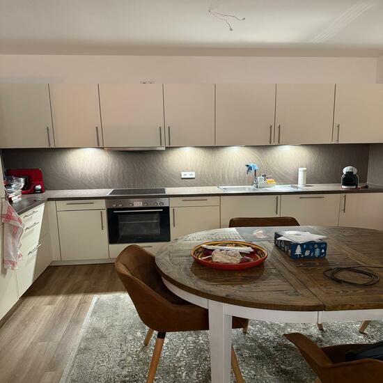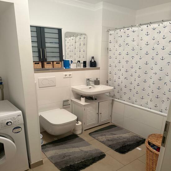 Die Einbauküche ist modern gestaltet. Das Wannenbad verfügt über einen Waschmaschinenanschluss und präsentiert sich in gepflegtem Zustand.